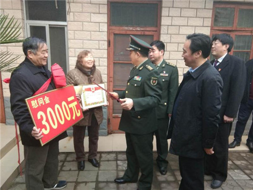 該縣擁軍優(yōu)屬“七送”活動具體為:送“功臣之家”牌匾、送立功授獎喜報、送慰問金、送慰問品、送春聯(lián)年畫、送軍屬光榮牌、送“周口好兵”宣傳卡等“大禮包”。