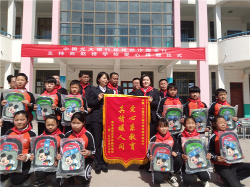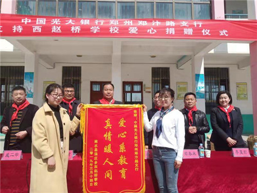 光大銀行鄭汴路支行向商水趙橋?qū)W校獻(xiàn)愛心