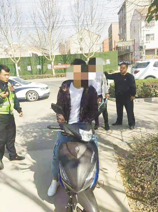 3月16日15時(shí)許,鄲城縣交警大隊(duì)治超中隊(duì)民警巡邏至公園東路時(shí),發(fā)現(xiàn)兩名小伙子駕駛“炸街摩托”開(kāi)得飛快,險(xiǎn)象環(huán)生。執(zhí)勤隊(duì)長(zhǎng)何濤立即指令前方巡邏民警布置錐筒和警示牌進(jìn)行攔截。經(jīng)過(guò)一番努力,執(zhí)勤民警終于將兩輛“炸街摩托”攔停。
