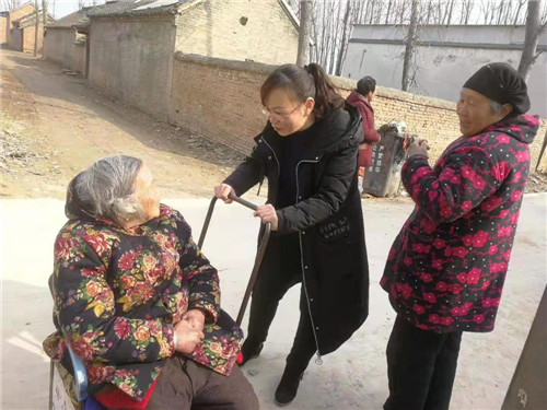 鏗鏘扶貧路,拳拳民生情。林娜加班加點(diǎn),扎實(shí)的作風(fēng)不僅有效推動(dòng)了幫扶工作的順利推進(jìn),而且也換來(lái)了當(dāng)?shù)卮迕竦摹包c(diǎn)贊”。為推進(jìn)老人戶合吃合住問(wèn)題,林娜三番五次去做工作,段屯行政村于樓村86歲的老人王全英,年邁不能自理,遭兒子嫌棄,3個(gè)兒子都不愿贍養(yǎng)老人。一次,陰雨天,老人不慎跌倒,摔傷胳膊,兒女們都不管不顧,林娜在走訪的過(guò)程中了解情況后,立即幫老人買來(lái)膏藥貼上,同時(shí)開(kāi)始做兒女的思想工作,“家有一老似有一寶,孝親愛(ài)老是中華民族的傳統(tǒng)美德”,經(jīng)過(guò)林娜再三做思想工作,三個(gè)兒子茅塞頓開(kāi),愿意贍養(yǎng)老人,最終老人在三個(gè)兒子家輪流吃住。在林娜及隊(duì)員的共同努力下,段屯行政村不僅老人戶全部合戶,而且在全村掀起了爭(zhēng)做賢孫孝媳的局面。一名老黨員袁士成,每次見(jiàn)了工作隊(duì)都豎起大拇指說(shuō):“兒女好,兒女好,兒女再好不如共產(chǎn)黨對(duì)俺好”。
