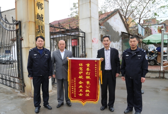 4月9日,南陽市市場監(jiān)督管理局和臥龍壓力容器有限公司一行4人專程來到鄲城,向鄲城警方表示誠摯的感謝,并將一面寫有“重拳打假秉公執(zhí)法 保駕護航 企業(yè)衛(wèi)士”的錦旗送到鄲城縣公安局食藥環(huán)大隊民警手中。