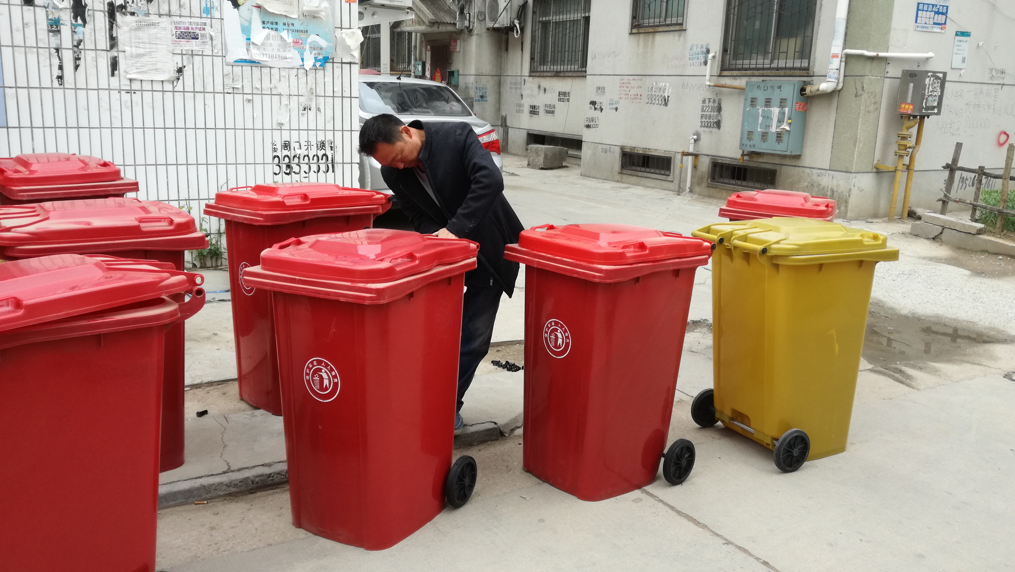 敞開式垃圾道“封口” 移動(dòng)式垃圾桶“上崗”