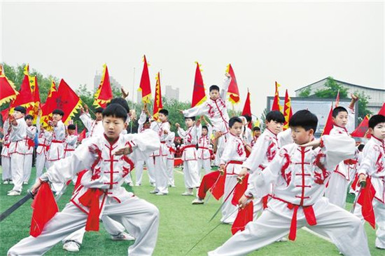 5月18日上午,為期一周的商水縣2019年“全民健身月”系列活動(dòng)啟動(dòng)。據(jù)悉,系列活動(dòng)期間,該縣將舉辦“縣長杯”中學(xué)生足球賽、“萬步有約”職業(yè)人群健走、中小學(xué)生陽光體育運(yùn)動(dòng)會(huì)、周口市第四屆鞭陀交流賽等活動(dòng),全縣共有66支代表隊(duì)5000余人參與其中。圖為啟動(dòng)儀式上的節(jié)目展演。記者 付永奇 攝