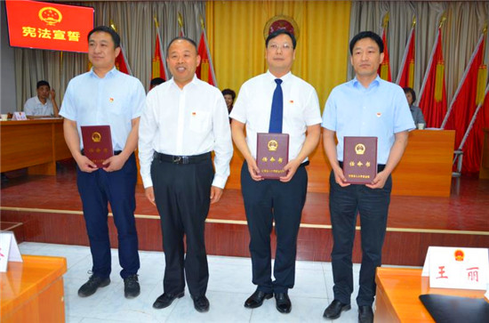 會(huì)議書(shū)面學(xué)習(xí)了栗戰(zhàn)書(shū)委員長(zhǎng)在全國(guó)人大常委會(huì)水污染防治法執(zhí)法檢查組第一次全體會(huì)議上的講話,聽(tīng)取審議了太康縣人大常委會(huì)執(zhí)法檢查組關(guān)于檢查水污染防治“一法一條例”貫徹實(shí)施情況的報(bào)告,聽(tīng)取審議了縣城市管理局、縣農(nóng)業(yè)農(nóng)村局、縣文化廣電和旅游局、縣應(yīng)急管理局主要負(fù)責(zé)人述職報(bào)告并進(jìn)行滿意度測(cè)評(píng)。會(huì)議根據(jù)縣人民政府的提請(qǐng),依法免去卜迎濤、張國(guó)慶兩位同志的太康縣人民政府副縣長(zhǎng)職務(wù),任命耿黨恩、李煒、孟濤三位同志為太康縣人民政府副縣長(zhǎng),被任命的同志進(jìn)行了憲法宣誓,張思民為被任命同志頒發(fā)了任命書(shū)。