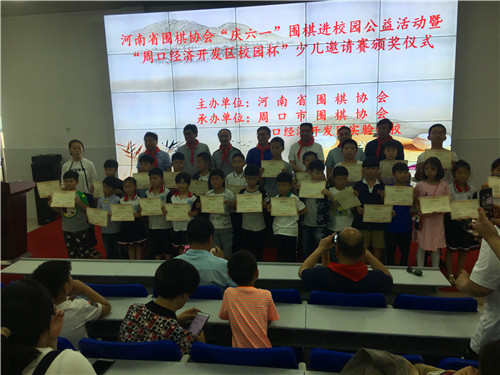 活動(dòng)中,來(lái)自我市各地的百余名圍棋小選手們齊聚一堂,切磋棋藝,以特殊的方式慶祝六一兒童節(jié)。省圍棋協(xié)會(huì)向周口經(jīng)濟(jì)開發(fā)區(qū)實(shí)驗(yàn)學(xué)校捐贈(zèng)了小學(xué)生圍棋教材、圍棋題集等圍棋書籍和器具。