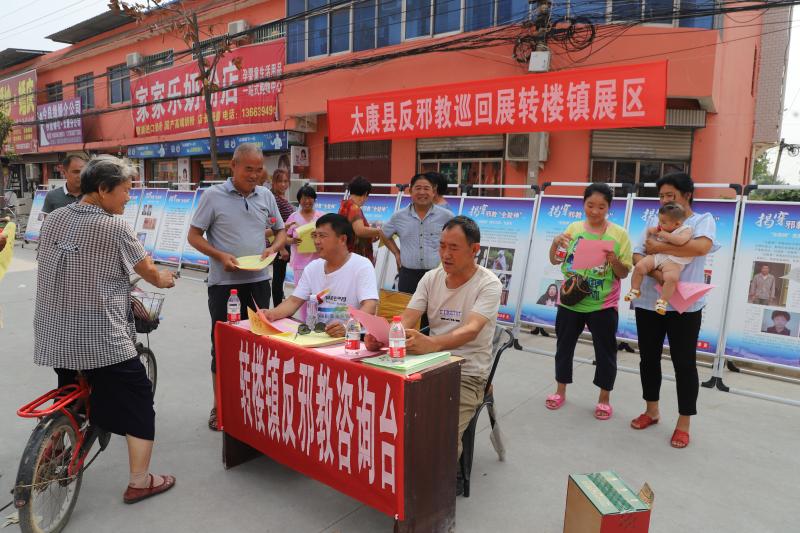 7月16日,太康縣反邪教巡回展在轉(zhuǎn)樓鎮(zhèn)開展反邪教宣傳活動(dòng)。當(dāng)日,轉(zhuǎn)樓鎮(zhèn)政府組織鎮(zhèn)綜治中心、派出所、司法所、中心校等單位,在轉(zhuǎn)樓大街布置展板、咨詢臺(tái),接受群眾咨詢1000余人次,發(fā)放宣傳頁1000多份。 記者 馬治衛(wèi) 通訊員 徐偉 攝