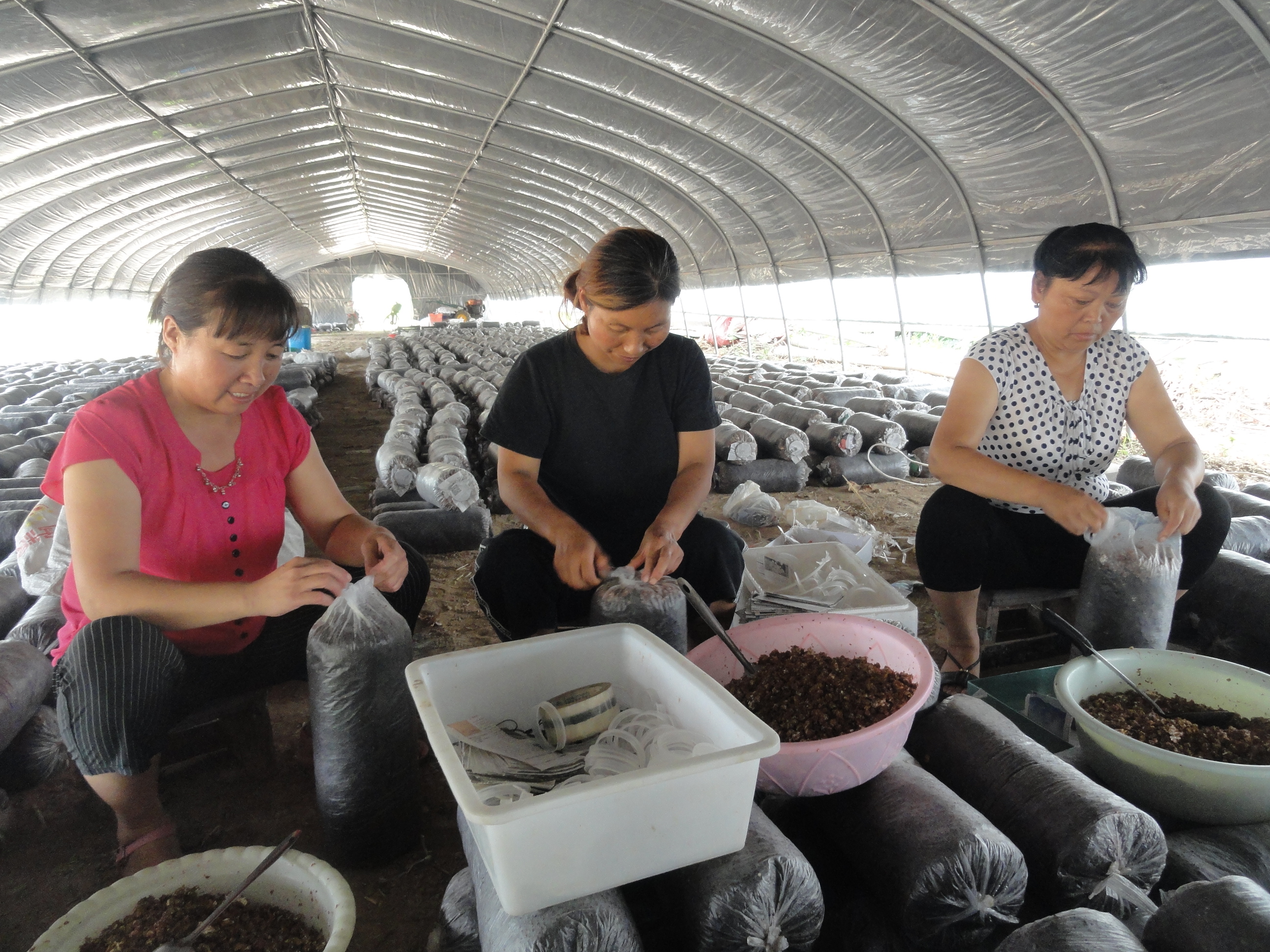 黃寨鎮(zhèn)的楊秀麗在鎮(zhèn)黨委、鎮(zhèn)政府的支持下,先后投資120多萬元,在楊營村創(chuàng)建了榮達(dá)食用菌合作社,實(shí)行統(tǒng)一育種、統(tǒng)一管理、統(tǒng)一技術(shù),直接帶動(dòng)20多戶群眾實(shí)現(xiàn)增收。圖為昨日,楊秀麗和合作社人員一起裝封菌種。