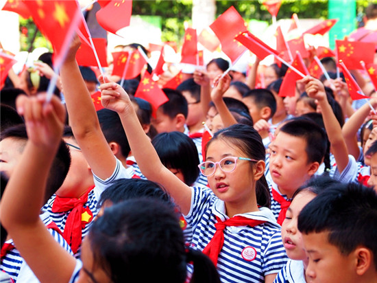 “我和我的祖國,一刻也不能分割……”9月6日上午,長沙市未成年人“傳承紅色基因 向國旗敬禮”主題教育實(shí)踐活動啟動儀式在芙蓉區(qū)大同小學(xué)正式舉行,伴隨著《我和我的祖國》的美妙旋律,上千名青少年齊聲高歌,鮮艷的五星紅旗一起舞動,匯成一片紅色的海洋。