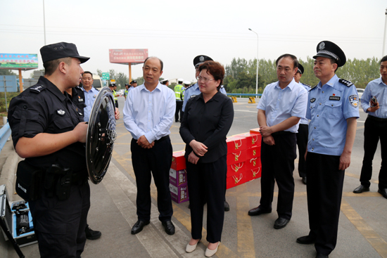 離70年大慶越來越近,喜慶的氣氛越來越濃,一線執(zhí)行安保工作的公安民警肩上的擔(dān)子也越來越重。9月24日下午,扶溝縣領(lǐng)導(dǎo)張穎波、詹凱、朱良杰、王霄靈及縣公安局局長(zhǎng)田豪杰等,來到鹽洛高速扶溝站親切看望在此執(zhí)勤的公安民警。