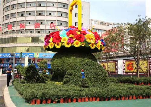 9月28日上午,記者來到紫氣大道、游客中心、上清湖、閆溝河、明道宮景區(qū)等地,看到臨街店鋪、文化中心廣場以及紫氣大道等主干道兩側路燈桿上懸掛的國旗隨風飄揚,街頭游園內擺滿了造型不一的鮮花盆景,大街小巷披上節(jié)日盛裝,老子故里人用行動祝福祖國,愿祖國明天更美好。