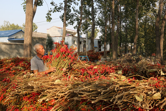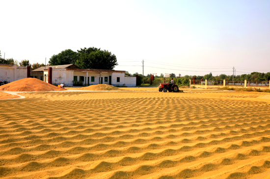 此時,正值西華縣秋收時節(jié),玉米、花生、大豆、谷子、辣椒、柿子、大棗、甘蔗等農(nóng)作物應季而熟。滿眼的金色、紅色與田間地頭緊張運作的農(nóng)業(yè)機械和農(nóng)民忙碌的身影構成一幅美不勝收的秋收畫卷。