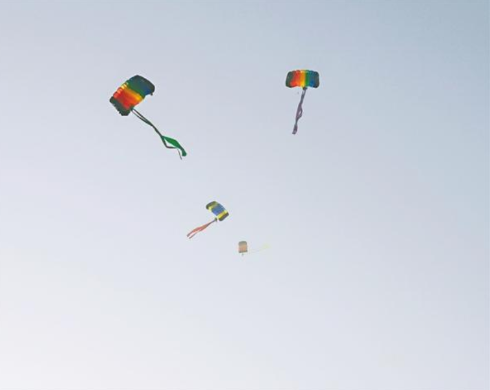 “快看,跳傘表演開始了!”10月29日上午,周口西華通用機(jī)場首航儀式結(jié)束后,一場精彩絕倫的飛行表演開始了。載著跳傘運(yùn)動(dòng)員的飛機(jī)飛到指定地點(diǎn)后,運(yùn)動(dòng)員攜帶國旗和彩帶從高空跳下,打開傘包后,五顏六色十分漂亮,引得圍觀群眾不時(shí)叫好。