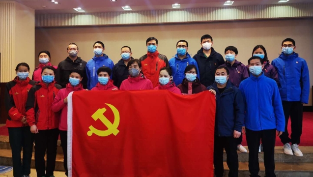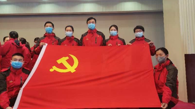 黨旗高高飄揚在疫情防控第一線