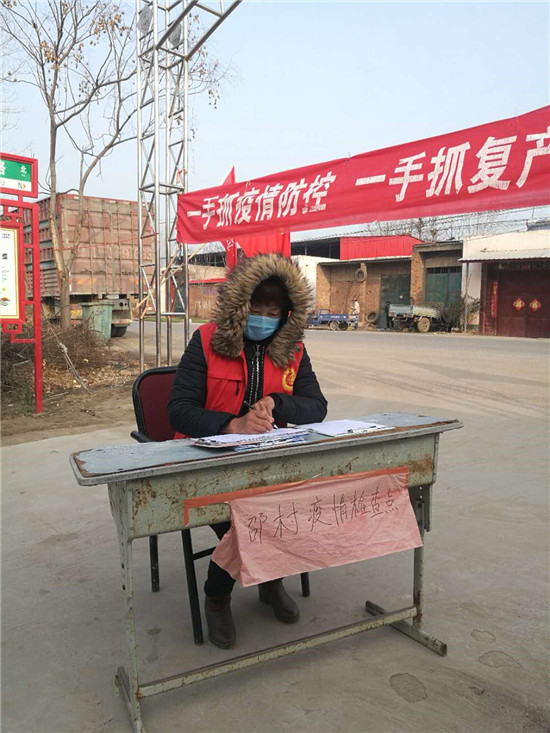 臘月三十那天,餃子剛剛包好,王愛月同志臨危受命,根據(jù)鎮(zhèn)黨委安排部署,果斷迅速組織布防嚴(yán)控,立即進(jìn)入疫情防控第一線。鄉(xiāng)鎮(zhèn)召集各村黨支部書記召開會議,分析研判嚴(yán)峻形勢,要求各村支部發(fā)揮基層組織“戰(zhàn)斗堡壘”作用,立即摸清情況,穩(wěn)定群眾情緒,增強(qiáng)群眾信心;鎮(zhèn)中心衛(wèi)生院給各村醫(yī)安排防疫工作。會后,村兩委班子第一時間成立了奉母鎮(zhèn)后邵村防控新冠肺炎疫情領(lǐng)導(dǎo)小組,王愛月?lián)胃苯M長,協(xié)助支部書記制定全村防控應(yīng)急處置方案,負(fù)責(zé)處理疫情持續(xù)期間各類防控工作,結(jié)合后邵村實際,從疫情摸排、防控物資采購、應(yīng)急值守、各場所消毒、道路設(shè)卡等各方面全面做好準(zhǔn)備。全村組建6個排查組對全村居民逐戶排查,她親自帶隊逐戶排查所有外來人員,確保不漏一戶一人。之后,建立排查臺賬,及時準(zhǔn)確掌控疫情動態(tài),為每位務(wù)工返鄉(xiāng)人員發(fā)放了注意事項告知書和宣傳單,對外出返鄉(xiāng)人員落實了包戶責(zé)任制。同時建立防控微信群,實時掌握他們的身體情況,解答他們的疑惑,全力做好心理疏導(dǎo)工作,切實解決鄉(xiāng)里鄉(xiāng)親的困難問題。