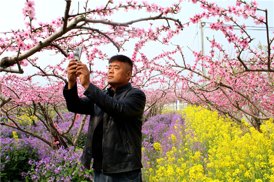 “老鐵們,今年桃花節(jié),因受疫情影響,是網(wǎng)上舉辦的,喜歡看黃橋桃花的網(wǎng)友,不要遺憾,我是您的忠實(shí)老鐵,每天會(huì)準(zhǔn)時(shí)給您分享桃花節(jié)的美景圖片及視頻,讓您足不出戶觀賞到萬(wàn)畝桃園桃花盛開的美景?!?月22日,在西華縣潁河灣生態(tài)采摘園,網(wǎng)紅“西華桃子哥”和合盛正在拍攝桃園美景,一邊通過(guò)抖音、快手、微信群向網(wǎng)友拍攝上傳桃花盛開的視頻、圖片等美景,一邊樂(lè)此不疲地口中念念有詞道。
