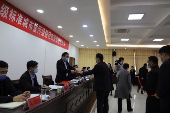 城關(guān)鎮(zhèn)、縣城管局、縣市場監(jiān)管局3家單位主要負(fù)責(zé)人和縣1家城市保潔公司,圍繞創(chuàng)建國家空氣質(zhì)量二級標(biāo)準(zhǔn)城市工作相繼作表態(tài)發(fā)言。各鄉(xiāng)鎮(zhèn)黨委書記分別向縣委書記王國璽遞交創(chuàng)建保證書。