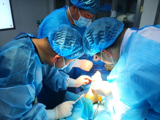 患者,張某,男,64歲,巴集鄉(xiāng)曹集行政村人。因下肢開(kāi)放足損傷,到巴集鄉(xiāng)衛(wèi)生院就診。由于患者年紀(jì)大、病情急,巴集鄉(xiāng)衛(wèi)生院人員技術(shù)能力有限,接診醫(yī)師告知需到縣級(jí)醫(yī)院進(jìn)行手術(shù)。患者家屬說(shuō)家庭困難,各項(xiàng)開(kāi)支大,請(qǐng)求能不能讓專家到下面開(kāi)展手術(shù)。接診醫(yī)師報(bào)醫(yī)共體辦公室聯(lián)系集團(tuán)總院,集團(tuán)總院立即組織幫扶專家團(tuán)隊(duì)。晚9點(diǎn),以集團(tuán)總院副院長(zhǎng)于祖河、骨科主治醫(yī)師王鑫和巴集鄉(xiāng)衛(wèi)生院外科主任楊志遠(yuǎn)、外科副主任王山嶺的協(xié)助下,成功地為張某行肌腱吻合、神經(jīng)探查、趾骨骨折內(nèi)固定術(shù)。目前,患者生命體征平穩(wěn),恢復(fù)良好。