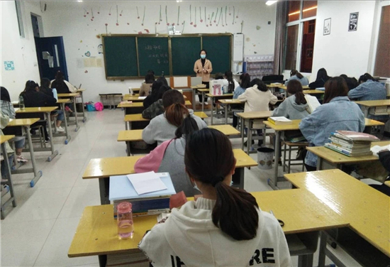 4月20日,學(xué)生報(bào)到。在校外廣場(chǎng),有專業(yè)教師耐心引導(dǎo),學(xué)生掃描健康碼進(jìn)行登記,間隔一米以上有序排隊(duì),電子測(cè)溫后進(jìn)入消毒區(qū)域。進(jìn)入校門前簽字確認(rèn),再次測(cè)溫,進(jìn)行身體和物品消毒方可進(jìn)入校園,學(xué)生找到自己專業(yè)班級(jí)登記確認(rèn)后進(jìn)入宿舍。就餐時(shí)單人單桌、同向按號(hào)進(jìn)餐。 4月21日,開學(xué)首日上午播放省教育廳制作的疫情防控宣傳片。院長侯營坡安排部署近期教學(xué)和防疫工作。下午各專業(yè)繼續(xù)進(jìn)行疫情防控知識(shí)普及、愛國主義教育、健康教育、心理疏導(dǎo)、食品安全教育等,由復(fù)學(xué)方案指定的教師分別授課。晚課時(shí)間召開主題班會(huì),班主任具體負(fù)責(zé),講解老師參加,采取師生互動(dòng),學(xué)生人人發(fā)言,讓學(xué)生進(jìn)一步懂得防控疫情的重要性及防控措施方法。學(xué)生上課實(shí)行單人單桌,保持一定距離,課前測(cè)試體溫,拒絕發(fā)熱學(xué)生進(jìn)入教室,做到教室通風(fēng),師生戴口罩,下課后不聚集,有序休息離開教室。教務(wù)處及各專業(yè)負(fù)責(zé)教學(xué)和疫情防控情況的督導(dǎo)。