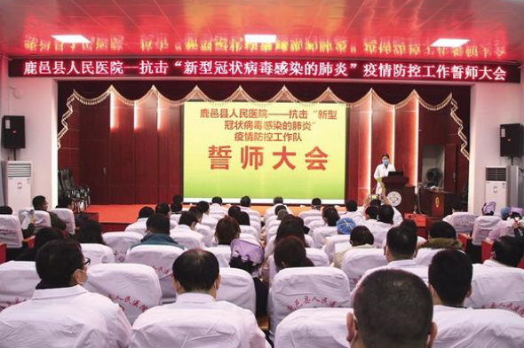 下午4時,老子故里鹿邑縣,縣域醫(yī)療健康服務(wù)集團牽頭單位、該縣規(guī)模最大的綜合性二級甲等公立醫(yī)院——縣人民醫(yī)院正在召開新冠肺炎疫情防控工作誓師會。