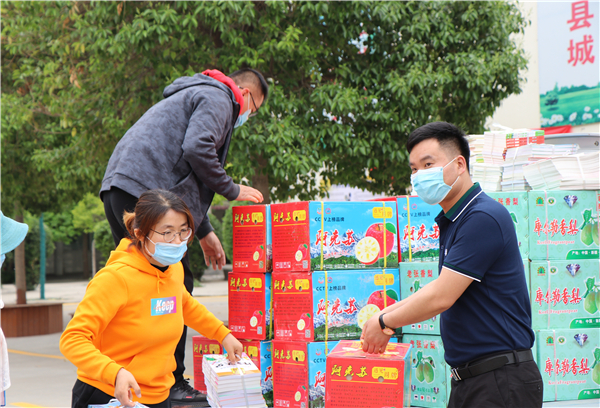 不久,一輛小貨車駛?cè)雽?shí)驗(yàn)小學(xué)院內(nèi),滿載著水果、毛巾、酒精、消毒液、洗手液和圖書等物資,總計(jì)價(jià)值兩萬(wàn)余元。吳玲玲跳下車,向迎上來(lái)的韓濤簡(jiǎn)單地打了招呼,便和學(xué)校工作人員一起把水果等物資卸載搬運(yùn)。