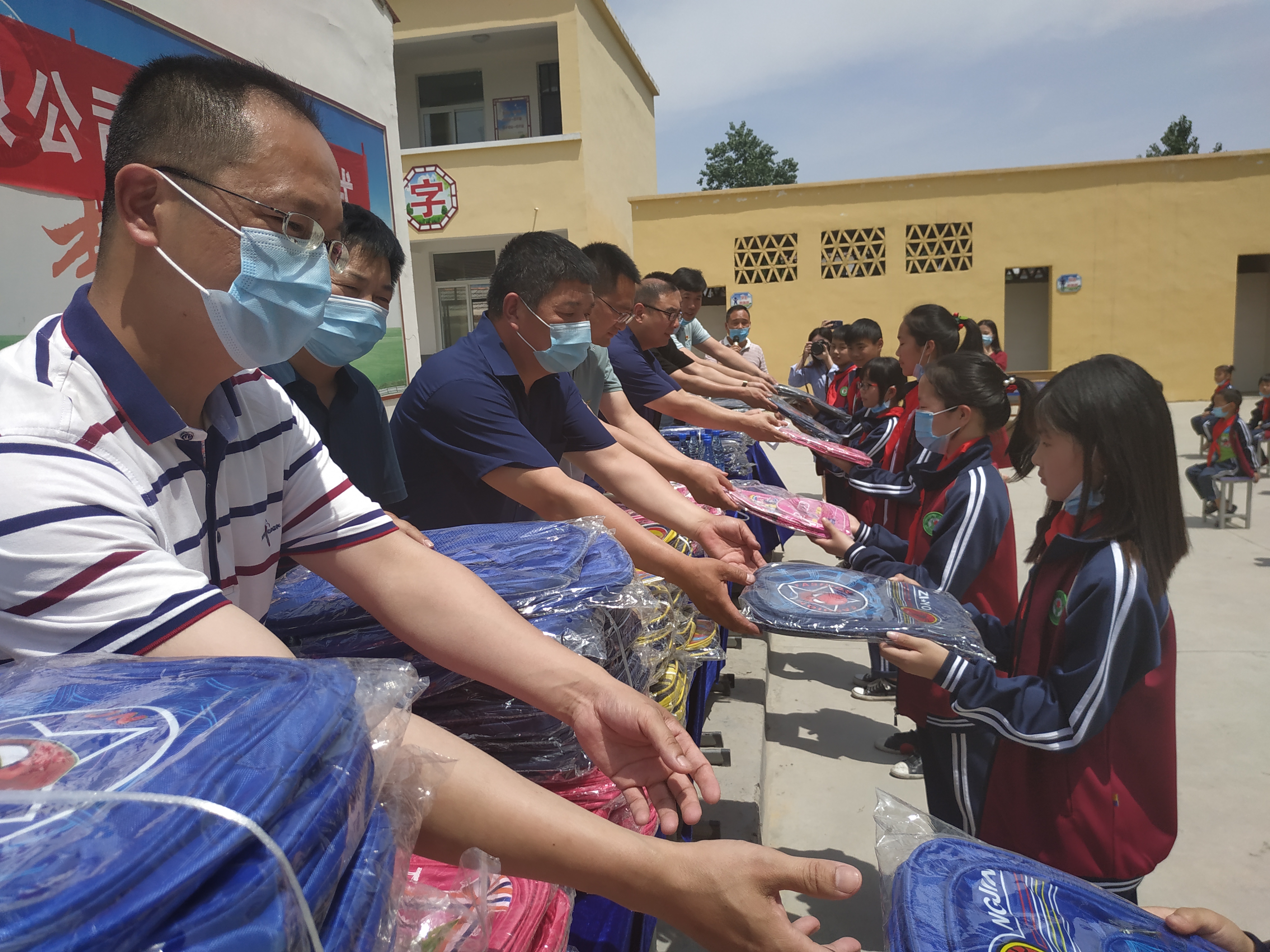5月21日,河南同和堂醫(yī)藥有限公司與部分周口愛(ài)心人士,穿過(guò)滾滾麥浪,來(lái)到市醫(yī)保局定點(diǎn)扶貧村——項(xiàng)城市新橋鎮(zhèn)北李營(yíng)行政村,為村小學(xué)的學(xué)生們送去200個(gè)書包,向他們提前送上六一兒童節(jié)的祝福。