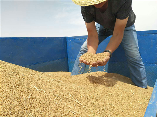 6月4日,商水縣高標準糧田示范區(qū)內,金燦燦的麥穗迎風擺動,麥香四溢。種糧大戶邱守先站在自家承包的麥田邊,揉搓著收割機剛剛吐出的麥粒:“你瞅瞅,這小麥籽粒飽滿,品相多好!”然而,面對豐收景象,他卻連連說“后悔了......”。
