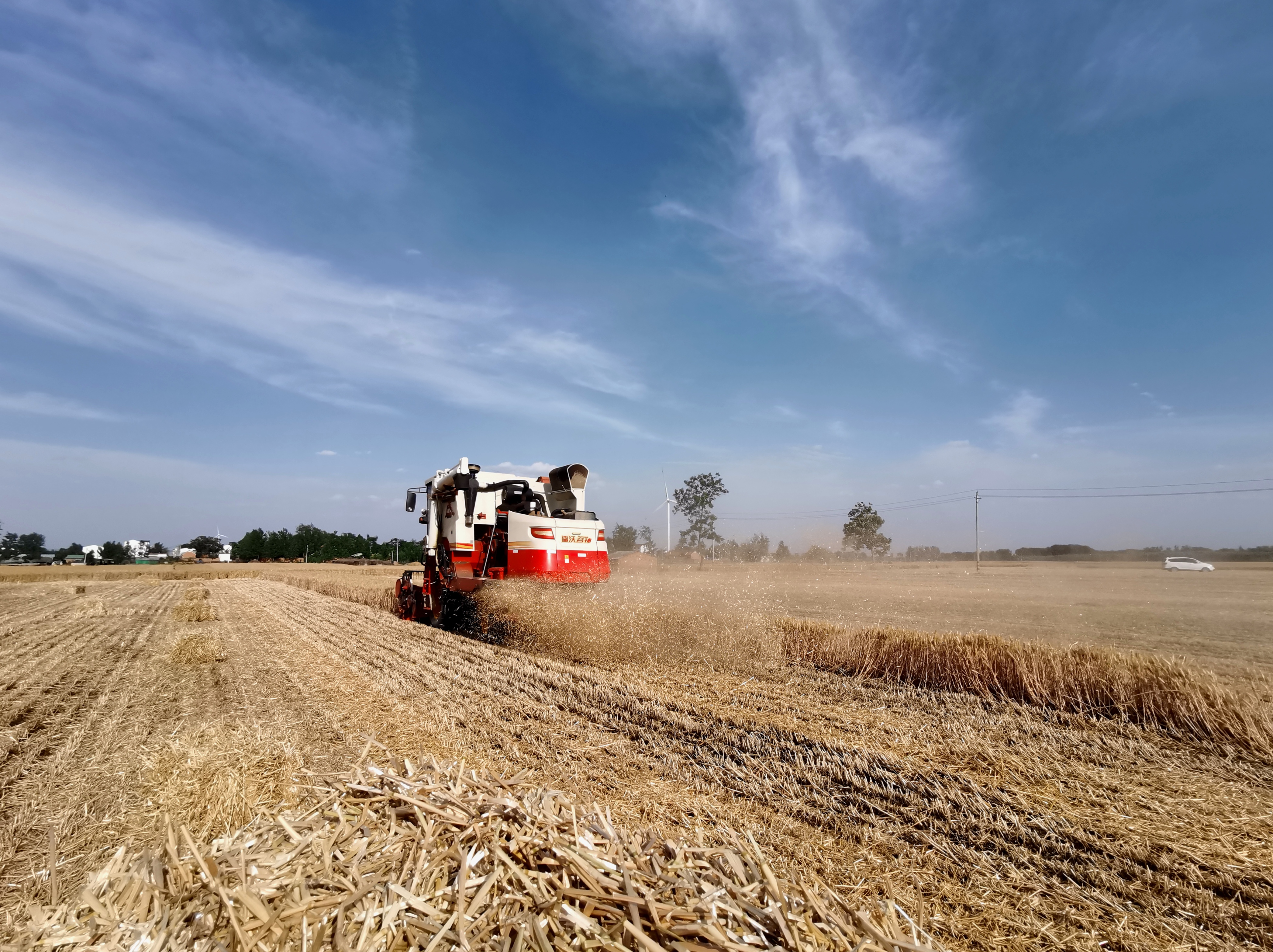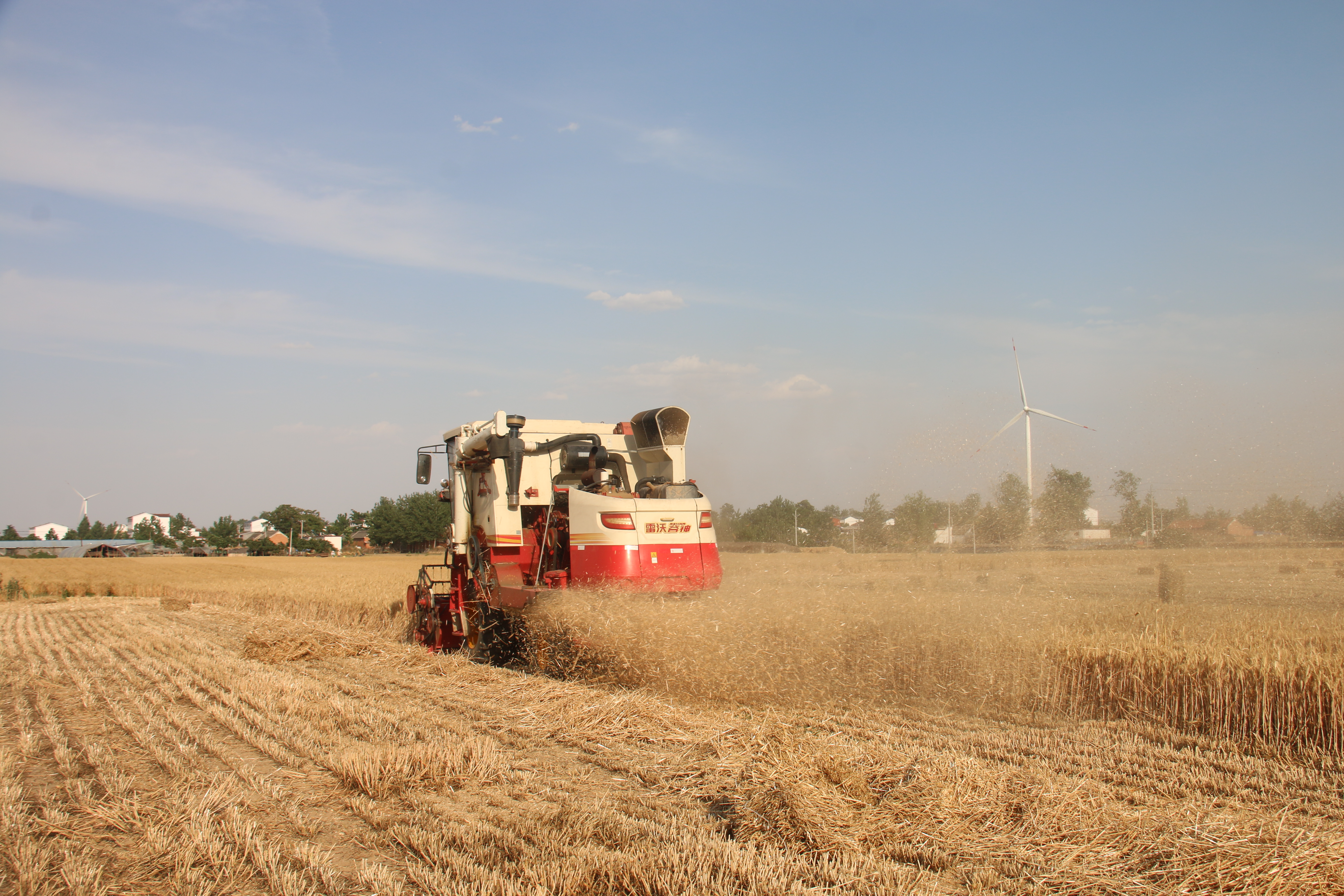 驕陽似火,麥香四溢。6月的西華鄉(xiāng)村大地到處一片繁忙景象。一臺(tái)臺(tái)收割機(jī)在金黃色的麥浪中轟鳴著馳騁,隨著小麥?zhǔn)崭顧C(jī)駛過,一顆顆金燦燦的麥穗被“吃”進(jìn)收割機(jī),然后,一粒粒飽滿的麥子從出倉口“吐”進(jìn)農(nóng)用車車斗里,農(nóng)民的臉上洋溢著豐收的喜悅。