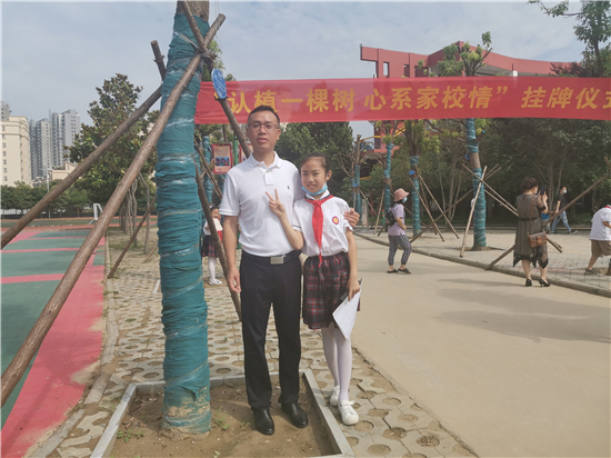 儀式結束后,學校為每一位認植香樟樹的學生和家長頒發(fā)了認植證書,留作紀念。然后,學校還為每一顆香樟樹編號掛牌,樹牌上含有認植家長和學生姓名、寄語等信息,同時,也可掃碼獲得更多認植人的照片等信息。