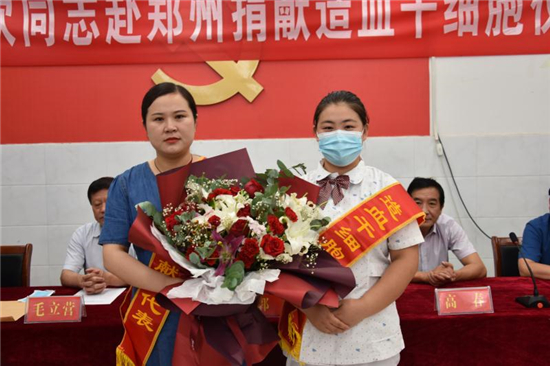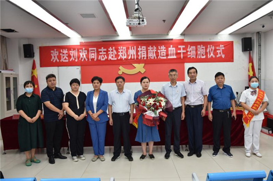“作為一名醫(yī)務人員,能為患者帶來生的希望,無論如何我都不會拒絕。希望捐獻后那位患者能早日康復,投入新生活……” 7月22日上午,在西華縣中醫(yī)院會議室舉行的劉歡同志赴鄭州捐獻造血干細胞歡送儀式上,這位來自該院骨科護士長的一番話贏得現(xiàn)場陣陣掌聲。市紅十字會常務副會長毛立營,市紅十字會秘書長高春,西華縣委副書記郭峰,西華縣人民政府副縣長、紅十字會會長張翠霞,西華縣衛(wèi)健委副主任胡濤,西華縣中醫(yī)院院長高彥博等出席歡送儀式。