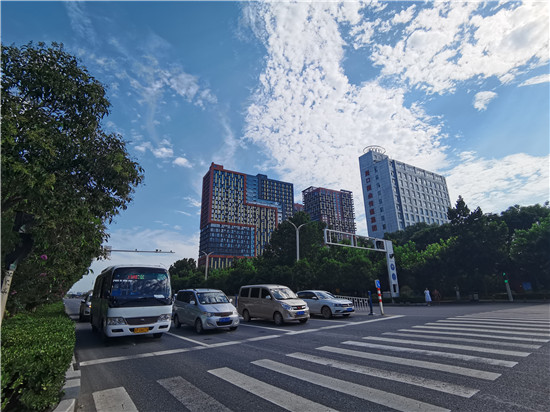 8月3日,周口市 中心城區(qū)晴空萬里,藍(lán)天白云,市民駐足在每個地方都能看到美景。