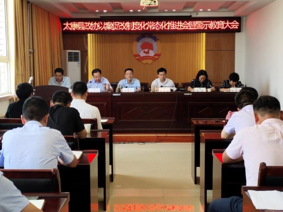 8月11日,太康縣政協(xié)召開深化以案促改制度化常態(tài)化推進會暨警示教育會??h政協(xié)主席、黨組書記王建林,縣政協(xié)副主席丁明禮、劉玲、王永剛、劉鳳芹及縣政協(xié)機關全體黨員干部參加了會議??h紀委監(jiān)委指導組親臨指導。