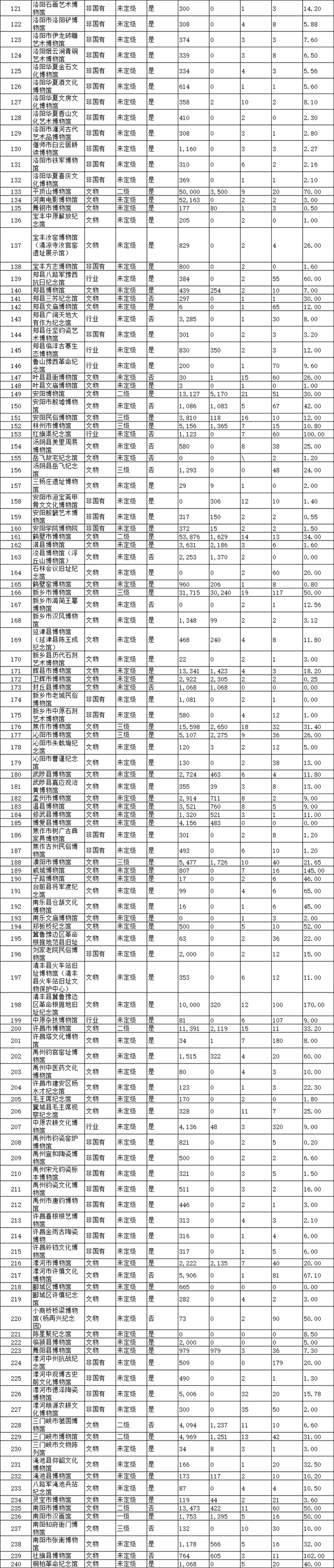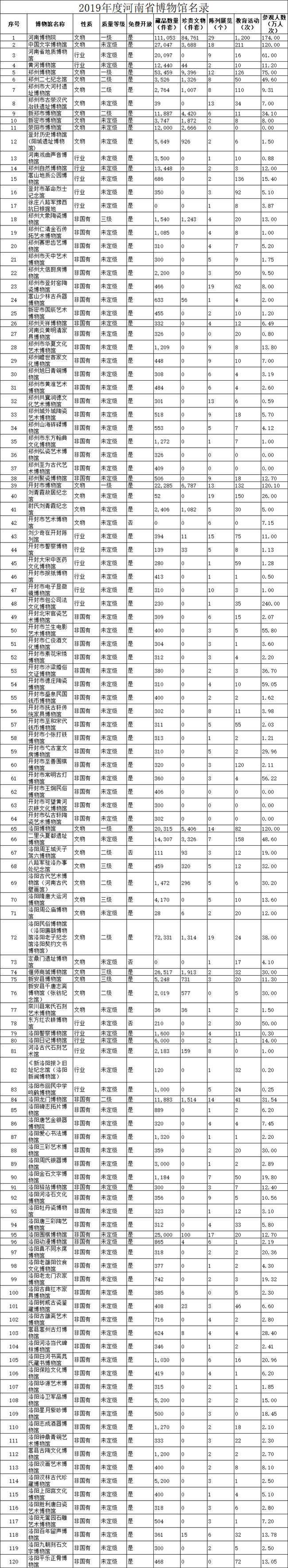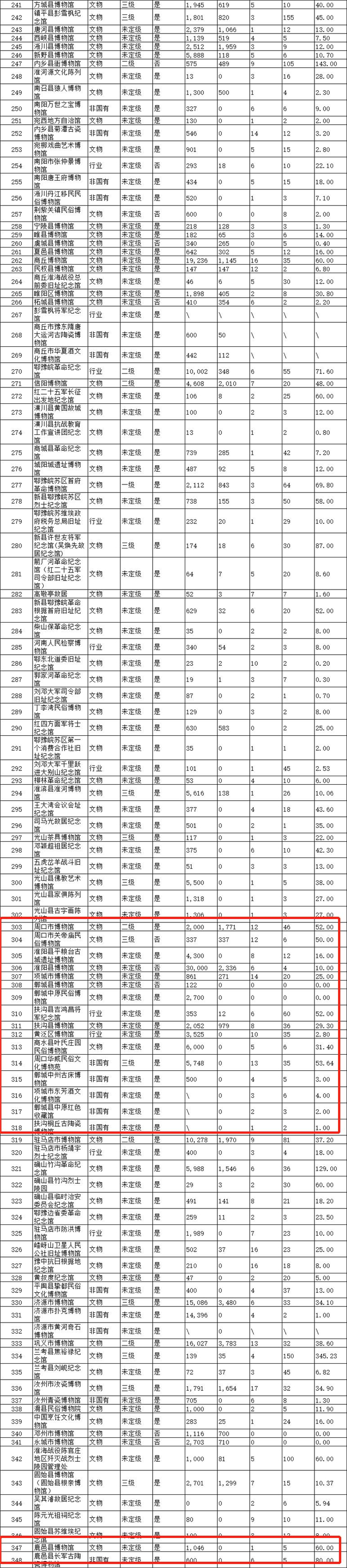 日前,《2019年度河南省博物館名錄》(以下簡(jiǎn)稱《名錄》)對(duì)外公布。根據(jù)《名錄》,截至2019年底,河南省共有348家博物館,年接待觀眾達(dá)7174萬(wàn)人次。周口市及下轄縣、區(qū)收入《名錄》博物館18家,年接待觀眾472.14萬(wàn)人次。