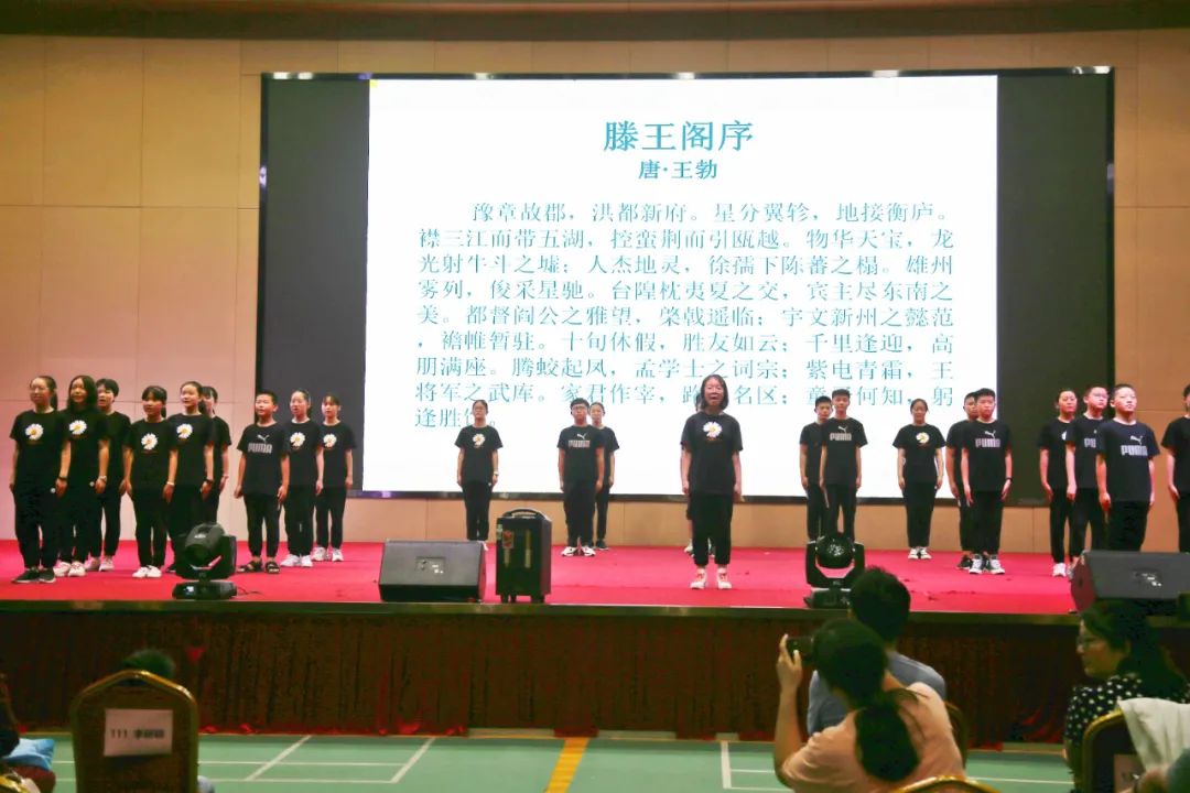 接著,國際班學(xué)生帶來了有趣的接龍方式——國學(xué)誦讀表演。他們熟記熟背,朗朗上口。幾十人的團(tuán)隊,或領(lǐng)頌,或齊頌,或輪頌,高低起伏,抑揚頓挫,鏗鏘有力。顯示了識記技巧和老師教學(xué)古典誦讀的良苦用心,展示了新星學(xué)校扎實