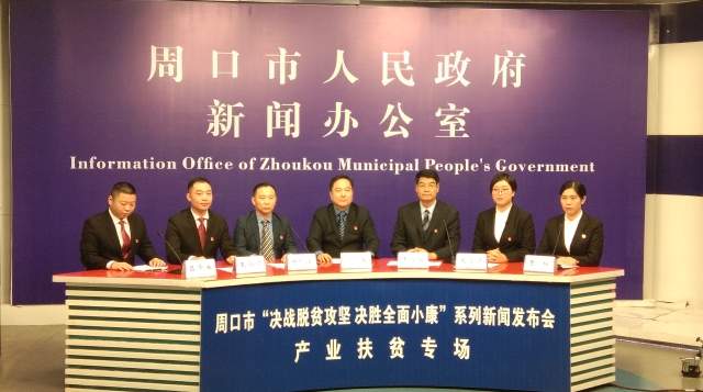 10月19日上午,周口市委宣傳部、市政府新聞辦、市扶貧辦舉行周口市“決戰(zhàn)脫貧攻堅(jiān)、 決勝全面小康”產(chǎn)業(yè)扶貧專題新聞發(fā)布會(huì)。