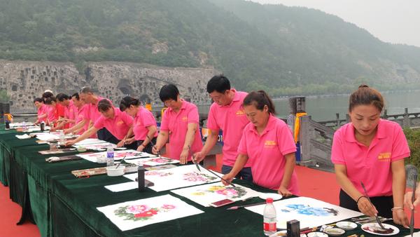 受郭泰森影響,村里不少農(nóng)民也想學(xué)習(xí)畫牡丹,在當(dāng)?shù)卣闹С趾蛶椭拢┥e辦了牡丹畫免費培訓(xùn)班、畫師培訓(xùn)班,參加培訓(xùn)的學(xué)員場場爆滿。如今,平樂鎮(zhèn)牡丹畫師已發(fā)展到1000余名,形成了包括培訓(xùn)創(chuàng)作、裱畫包裝、推介營銷、研學(xué)旅行等相對完整的產(chǎn)業(yè)鏈,帶動相關(guān)從業(yè)人員5000余人。
