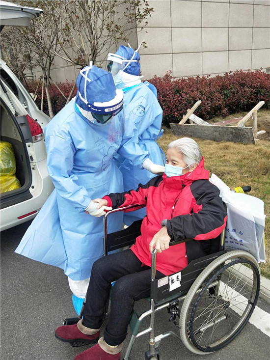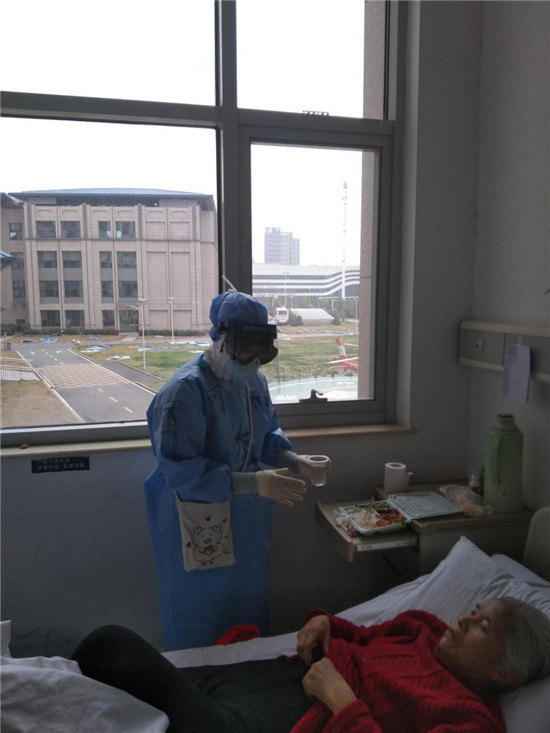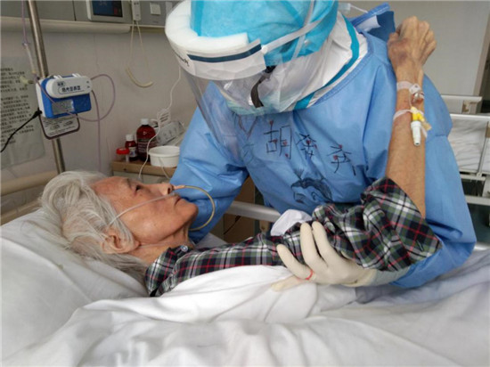 今年74歲的李秀紅,不僅感染新冠肺炎,而且罹患老年癡呆,生活需要時(shí)時(shí)照顧,而且剛?cè)朐簳r(shí),對(duì)陌生環(huán)境的恐懼造成她心情壓抑,天天不說(shuō)話,時(shí)不時(shí)落淚。為了讓老人放下心理包袱,胡奔奔在進(jìn)行哄喂吃飯、服藥等正常護(hù)理之余,經(jīng)常陪老人聊天、唱歌,后來(lái)老人情緒明顯好轉(zhuǎn),還主動(dòng)與胡奔奔一起扭起了舞蹈。后來(lái),老人康復(fù)出院時(shí),雖然無(wú)言 卻一直緊緊抓著胡奔奔的手久久不愿放開(kāi)。胡奔奔說(shuō),那一刻,她落淚了,但心里確實(shí)說(shuō)不出的高興。