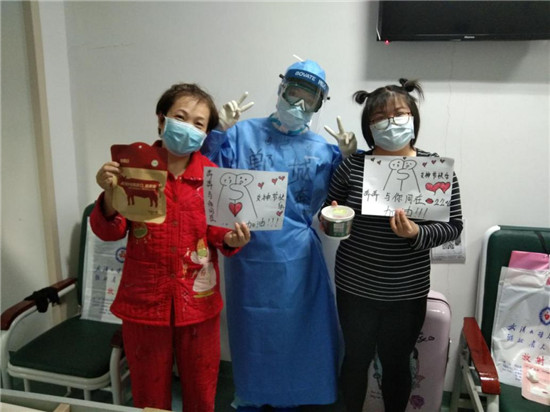 援鄂圖片集《防護(hù)服隔離不了心連心》