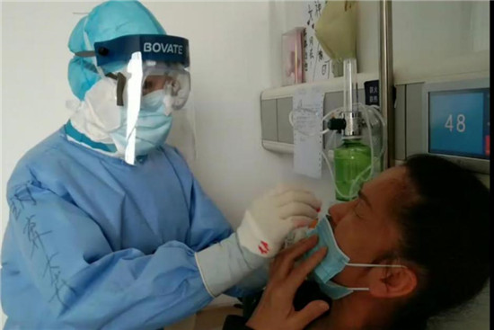 眾所周知,采集咽拭子、鼻咽拭子標(biāo)本是非常危險(xiǎn)的易感染密切接觸行為,同時(shí)對(duì)患者來(lái)說(shuō)也非常不適。在病區(qū)采集時(shí),胡奔奔總是動(dòng)作輕柔,邊采集邊輕聲安撫患者,緩解患者緊張情緒。而不少患者因?yàn)楦袘延诤急嫉南ば恼疹櫍偸菑?qiáng)行壓抑著自己的癥狀,盡量不發(fā)出咳嗽,避免對(duì)胡奔奔造成更大危險(xiǎn)。