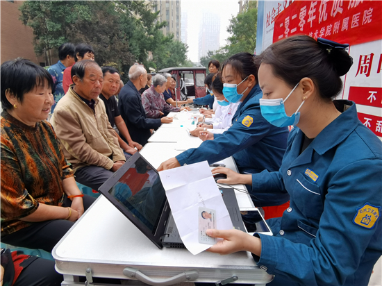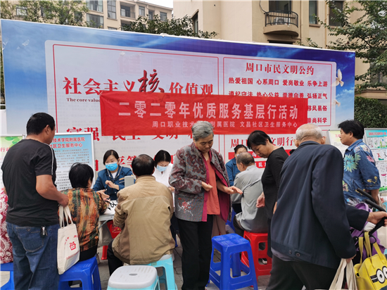 9月25日早上,周口市城鄉(xiāng)一體化示范區(qū)文昌社區(qū)衛(wèi)生服務(wù)中心的醫(yī)務(wù)人員在建業(yè)小區(qū)為居民測(cè)量血壓,并建立健康檔案。為滿足社區(qū)廣大群眾基本醫(yī)療衛(wèi)生服務(wù)需求,更貼心為轄區(qū)居民的服務(wù),文昌社區(qū)衛(wèi)生服務(wù)中心開展2020年優(yōu)質(zhì)服務(wù)基層行活動(dòng),文昌社區(qū)衛(wèi)生服務(wù)中心組織醫(yī)務(wù)人員不定時(shí)走進(jìn)各個(gè)小區(qū),為居民進(jìn)行基礎(chǔ)項(xiàng)目體檢,并建立居民健康檔案。