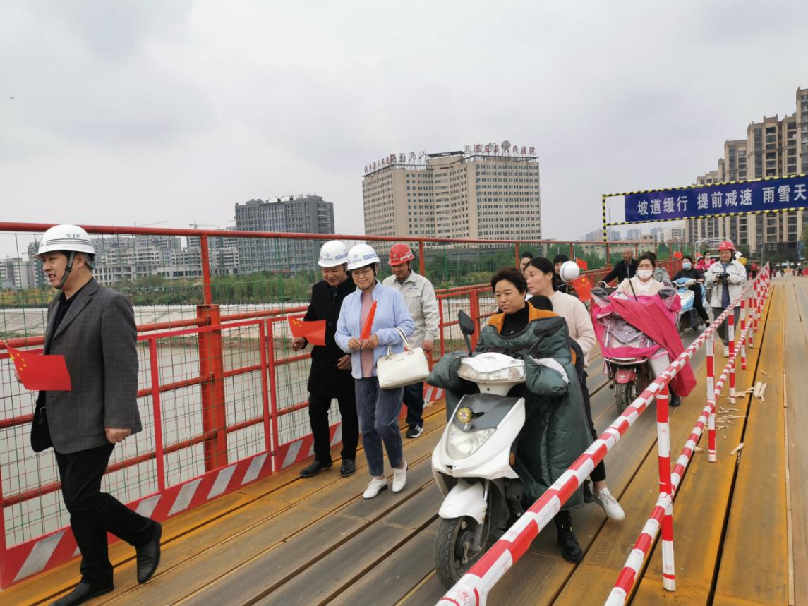這位女士口中的便民橋位于潁濱公園內(nèi),由中交二航局沙潁河航道升級改造工程PPP項(xiàng)目部承建。 據(jù)悉,基于沙潁河升級改造,位于縣醫(yī)院東側(cè)的一座橋需要拆除。為方面行人通行,中交二航局沙潁河航道升級改造工程PPP項(xiàng)目部,歷經(jīng)兩個多月時間搭建完成。中交二航局沙潁河航道升級改造工程PPP項(xiàng)目部副部長王子龍告訴記者,受老橋下游側(cè)跨河高壓電纜影響,項(xiàng)目部在上游側(cè)約120米處布置一座跨河鋼便橋,便橋長266米,寬6.0米。為提高安全指數(shù),橋兩側(cè)的護(hù)欄高度由原計(jì)劃的1.30米,提升到1.80米。