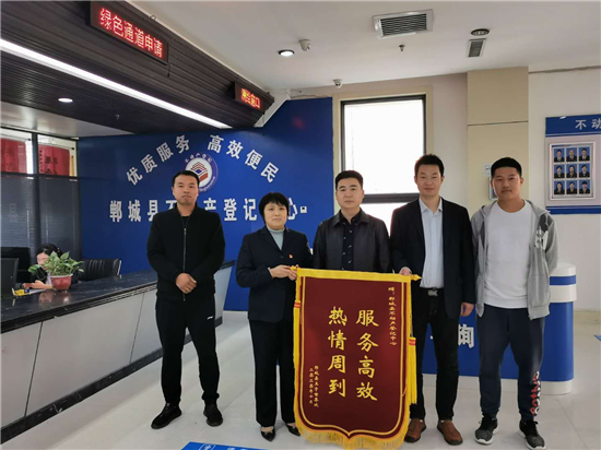 一面錦旗代表著一份感謝、一份肯定,鄲城縣不動產(chǎn)登記中心將把鼓勵化作動力,繼續(xù)秉承便民、高效的服務(wù)宗旨,不斷創(chuàng)新服務(wù)理念、優(yōu)化辦事流程、提高工作效率,努力將登記中心打造成政府放心、群眾滿意的服務(wù)部門。③5