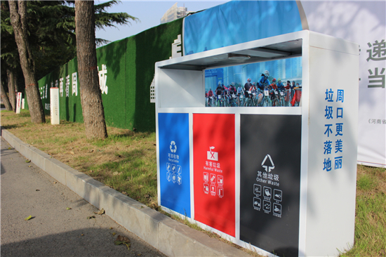 10月21日,記者在中心城區(qū)七一路東段、慶豐中路等路段看到,“藍(lán)、紅、黑”三色的新型分類垃圾桶在街邊整齊“列隊”,成為街頭一道靚麗的風(fēng)景。