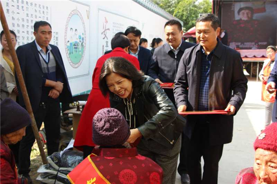 與此同時,在老冢鎮(zhèn)謝堂、中崗、李莊、劉屯西、敬老院等5個居村聯(lián)養(yǎng)點也同時開展了“飲宴敬老、歡度重陽”活動,邀請80歲以上的老黨員、老教師、老干部、參與“山果”扶貧助學(xué)行動鄉(xiāng)賢的父母、志愿者父母以及70歲以上的退伍老兵、特困人員參加。在活動現(xiàn)場,太康縣退役軍人事務(wù)局為70歲以上老兵發(fā)放棉衣200件,老冢鎮(zhèn)黨委政府為特困老人發(fā)放棉衣、棉帽271套,縣文聯(lián)帶來了道情戲,鎮(zhèn)衛(wèi)生院組織18名醫(yī)生開展了義診,老冢鎮(zhèn)志愿者聯(lián)合會組織60名志愿者到各個會場開展志愿服務(wù)……全鎮(zhèn)共計有1160位老人參加活動?!扒孙溩友纭背猿隽讼恪⒘粝铝饲?,營造了“敬老、愛老、助老”的文明新風(fēng)尚。