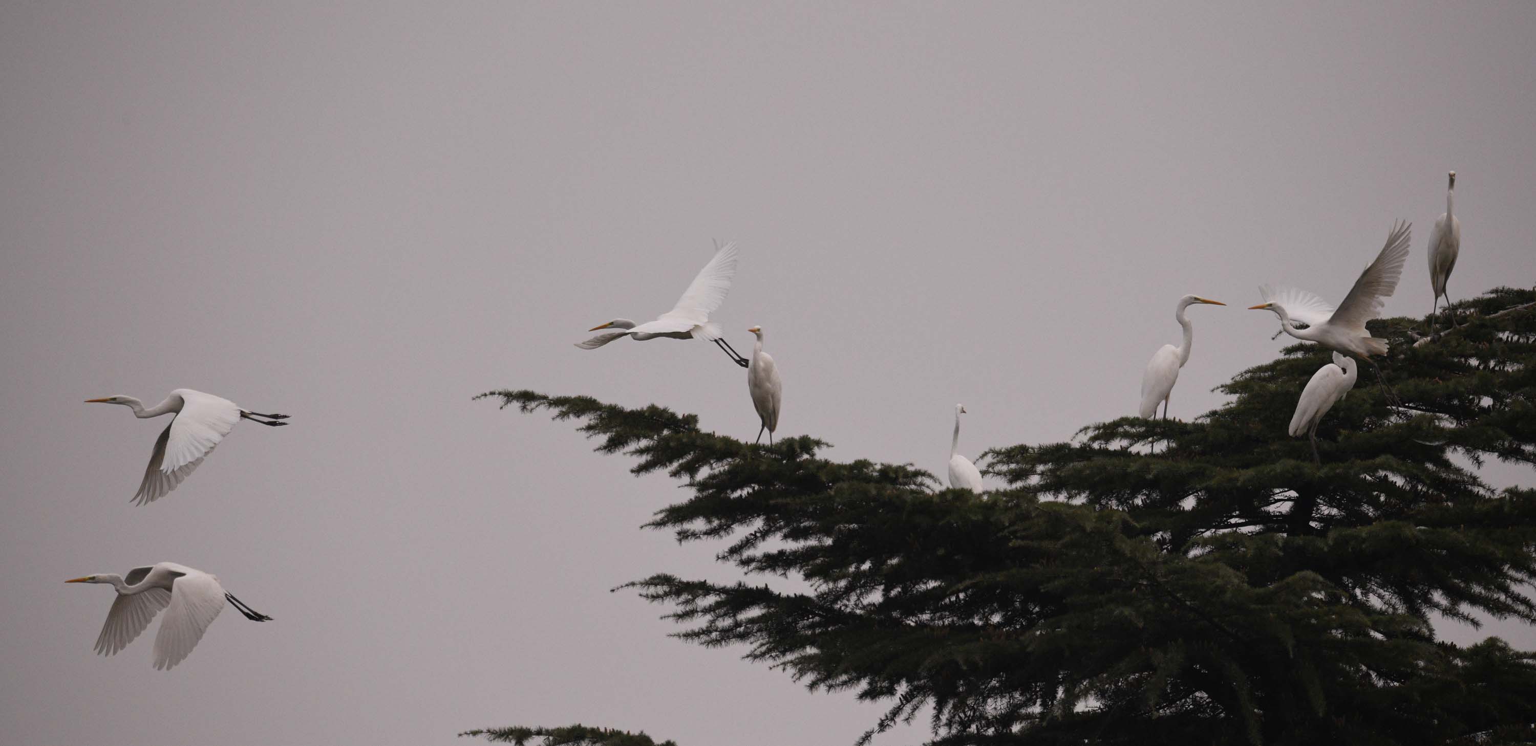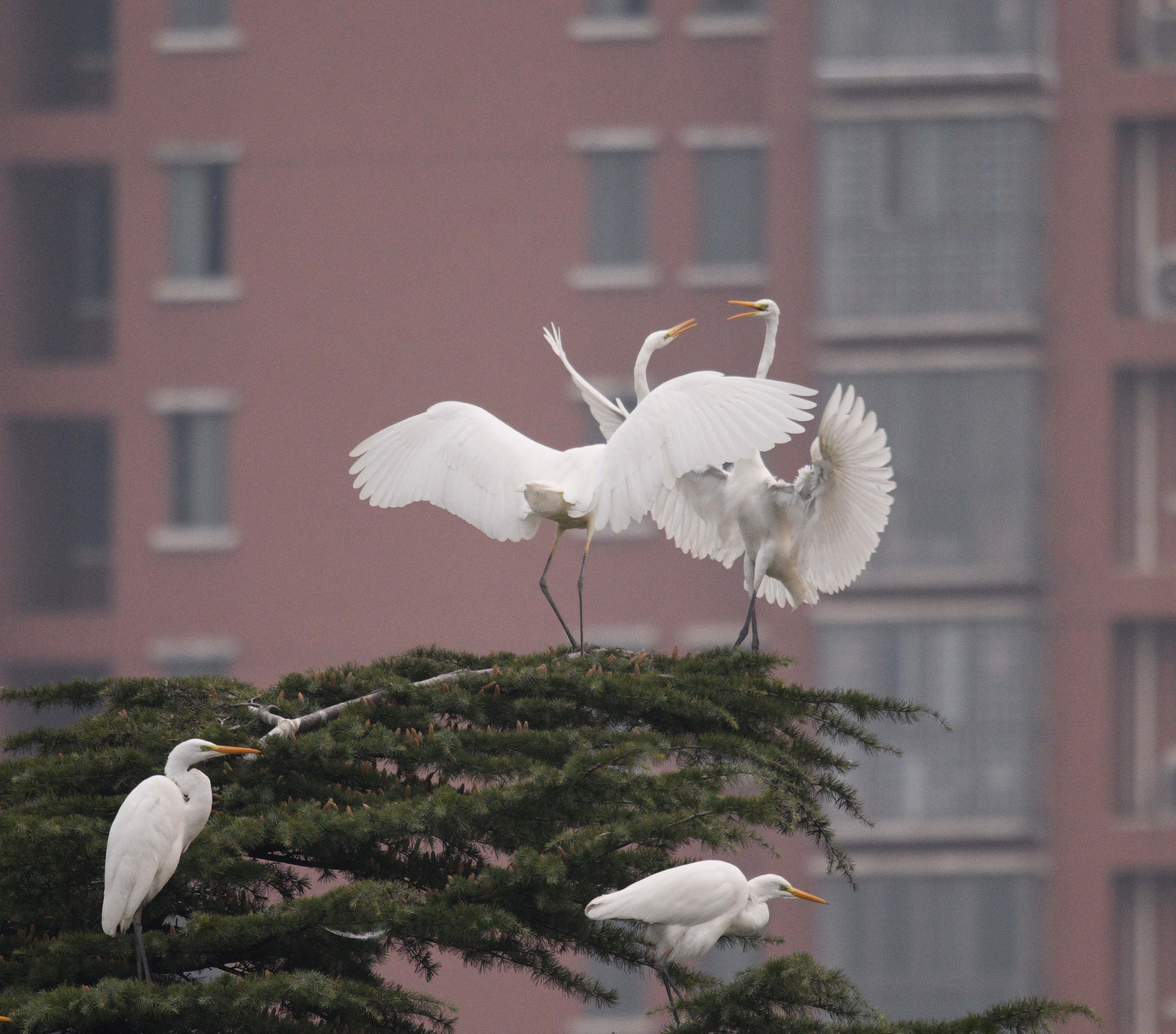 近日,市區(qū)漢陽路沙潁河大閘的中心島林間,飛來近百只白鷺。這里幽靜舒適的環(huán)境和河里豐富的魚蝦,滿足它們棲息和生活。它們面對(duì)行人,不驚不詫,時(shí)而盤旋嬉戲,時(shí)而捉魚果腹。人鳥和諧相處,構(gòu)成美麗的生態(tài)風(fēng)情。②9