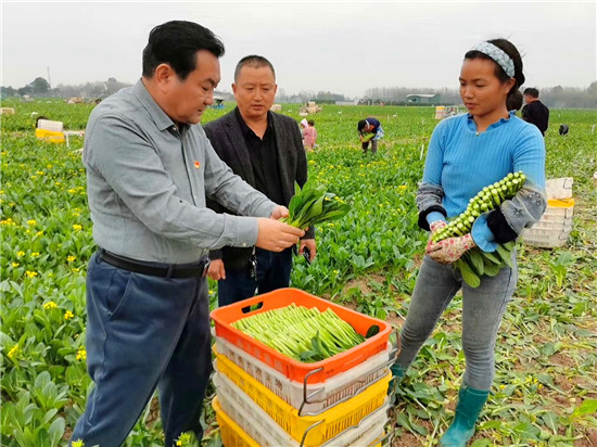 在張集鎮(zhèn)景鴻蔬菜種植基地,王國璽與正在干活的群眾親切交談,進菜地、看長勢、問產(chǎn)量,詳細(xì)了解產(chǎn)業(yè)規(guī)劃建設(shè)、政策落實、發(fā)展規(guī)模、運營模式、產(chǎn)品銷路、帶貧成效等具體做法和經(jīng)驗。王國璽指出,在疫情防控常態(tài)化下,鄉(xiāng)賢有效利用資本市場,與家鄉(xiāng)勞動力資源、土地資源有效銜接,發(fā)揮產(chǎn)品優(yōu)勢,增加群眾收入,鞏固了脫貧成果,為鄉(xiāng)村振興打下了堅實基礎(chǔ),要做好宣傳推廣和經(jīng)驗總結(jié)。