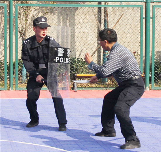 在法警大隊(duì)訓(xùn)練場,考核組一行觀看了擒敵拳和警械具使用、處置突發(fā)事件等實(shí)戰(zhàn)應(yīng)用。在處突演練過程中,5人組成的處突小組模擬各種突發(fā)情況進(jìn)行實(shí)戰(zhàn)演練,法警們反應(yīng)迅速,執(zhí)法規(guī)范,短短數(shù)秒內(nèi)就將"暴徒"制服。