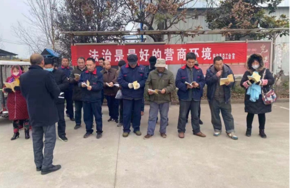 12月4日上午,市總工會到億星集團(tuán)為工會干部和職工進(jìn)行普法宣講,組織了職工通過豫工惠進(jìn)行憲法、民法典知識有獎答題,市總工會法律顧問、律師志愿者講解了《民法典》知識,發(fā)放了工會“一法一條例”(工會法、河南省工會條例)、豫工惠使用手冊指南以及有關(guān)法律法規(guī)資料。市總工會黨組成員、副主席郭建軍組織參加了學(xué)習(xí)宣傳活動。