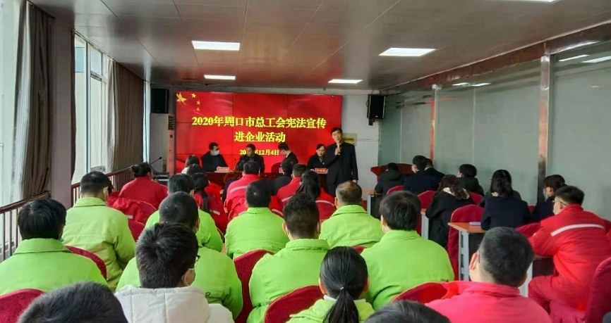 在第七個國家憲法日宣傳活動期間,周口市總工會根據(jù)市依法治市辦公室和省總工會普法辦工作要求,組織多種形式的憲法進(jìn)企業(yè)、進(jìn)廣場、網(wǎng)上憲法知識競答等學(xué)習(xí)宣傳活動。活動期間,全市工會組織參加38人次,其中工會律師志愿者10人次,發(fā)放資料2000多份,設(shè)立展板30多塊、咨詢臺9個,服務(wù)群眾1000多人次。