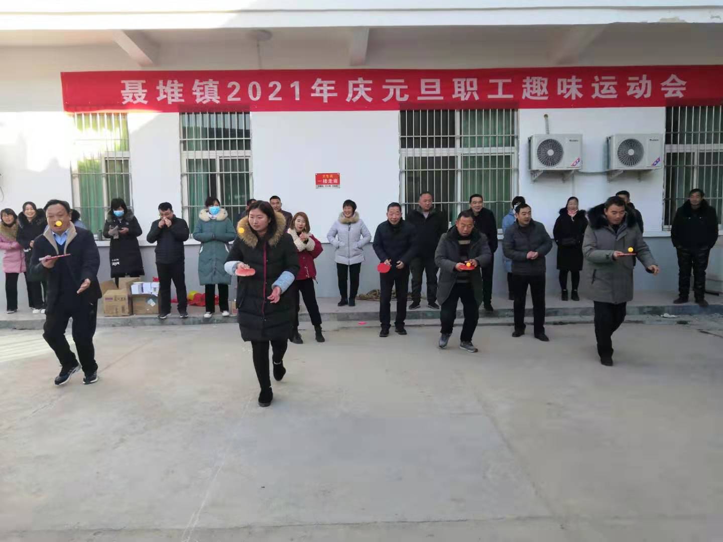 掂球接力、搶收搶種、綁腿競(jìng)走、螃蟹賽跑……12月31日上午,西華縣聶堆鎮(zhèn)政府院內(nèi)熱鬧非凡,笑聲連連,該鎮(zhèn)2021年慶元旦職工趣味運(yùn)動(dòng)會(huì)在這里如期舉行。