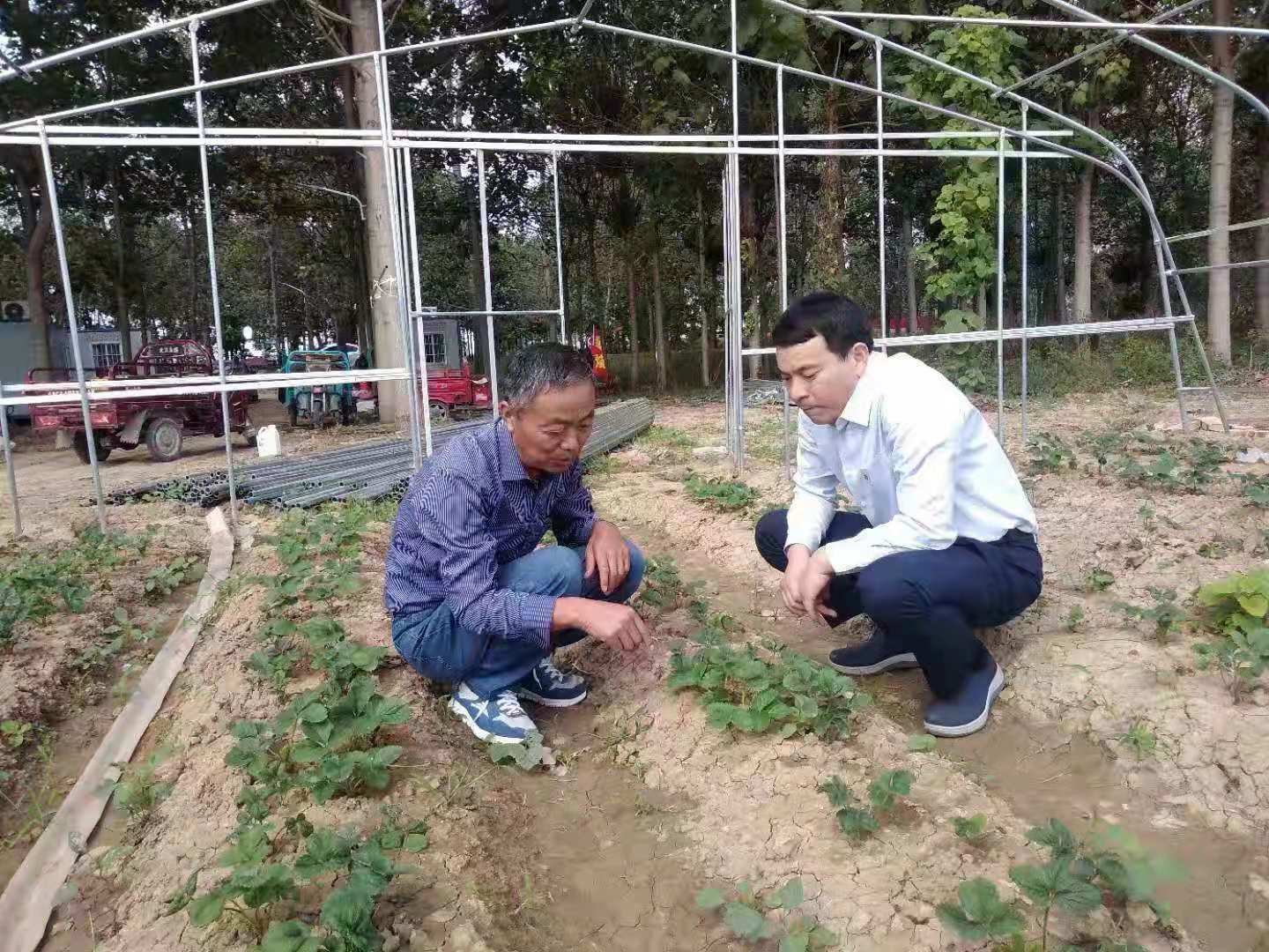 朝霞照在太康縣王集鄉(xiāng)106國道東側(cè)石山村適域種植合作社保溫大棚上,棚里溫暖如春?,F(xiàn)年58歲的李小橋行政村黨支部書記李為昌已經(jīng)開始在棚里忙碌,綠葉下的草莓顯得格外紅,他的笑洋溢著希望和成功。